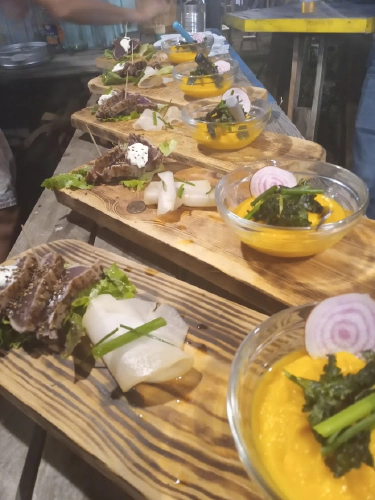 Ouverts lors des moments conviviaux et festifs du tiers-lieu, nous valorisons les producteurs et les produits de notre île, le fait-maison et le « faire-ensemble ». La grande majorité de notre carte est fabriquée sur place lors de nos chantiers, ateliers et permanences. Nous la voulons accessible, saine et surtout bonne.